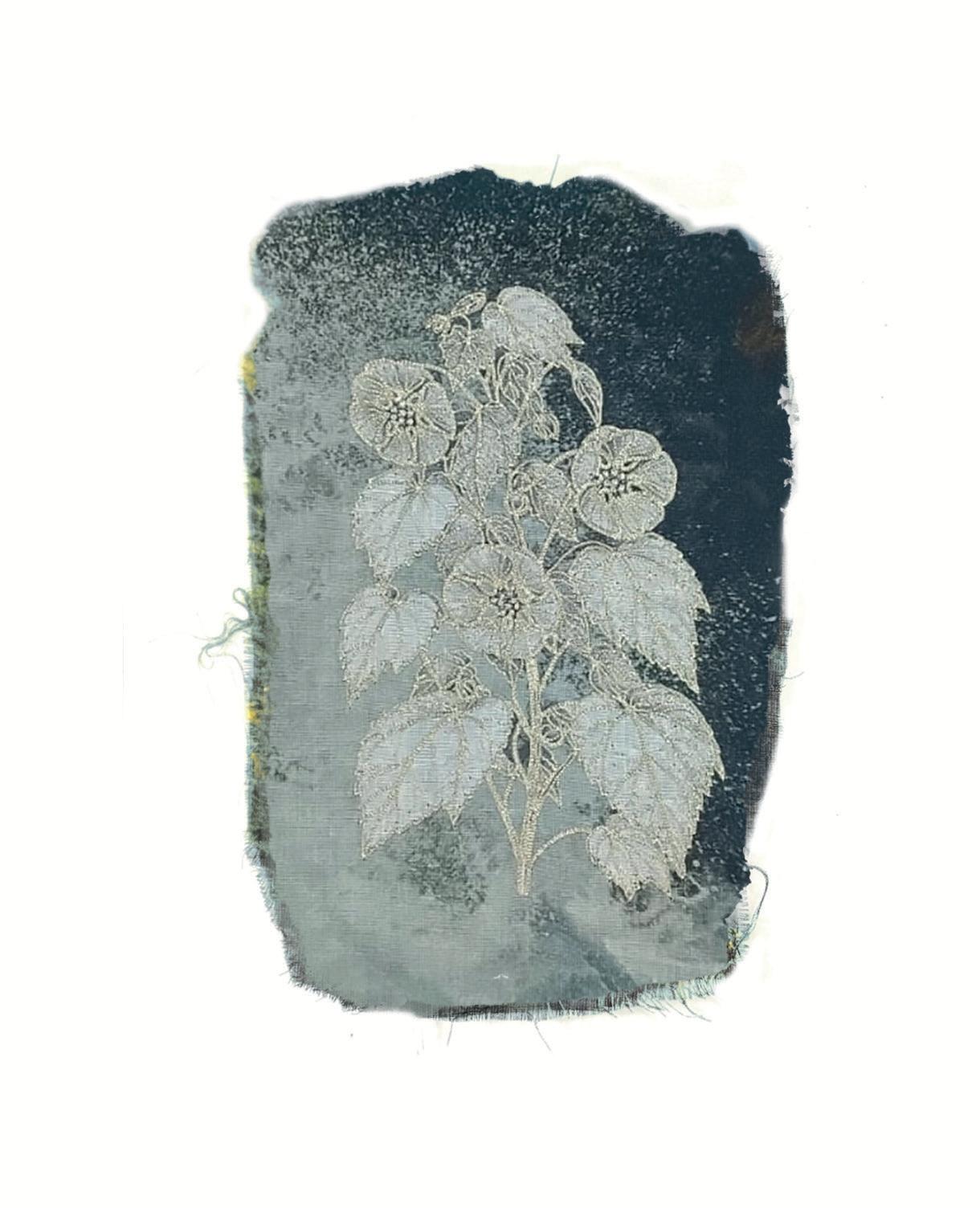 Embroidery on printed linen
