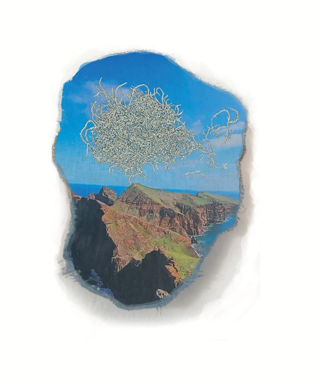 Embroidery on printed linen