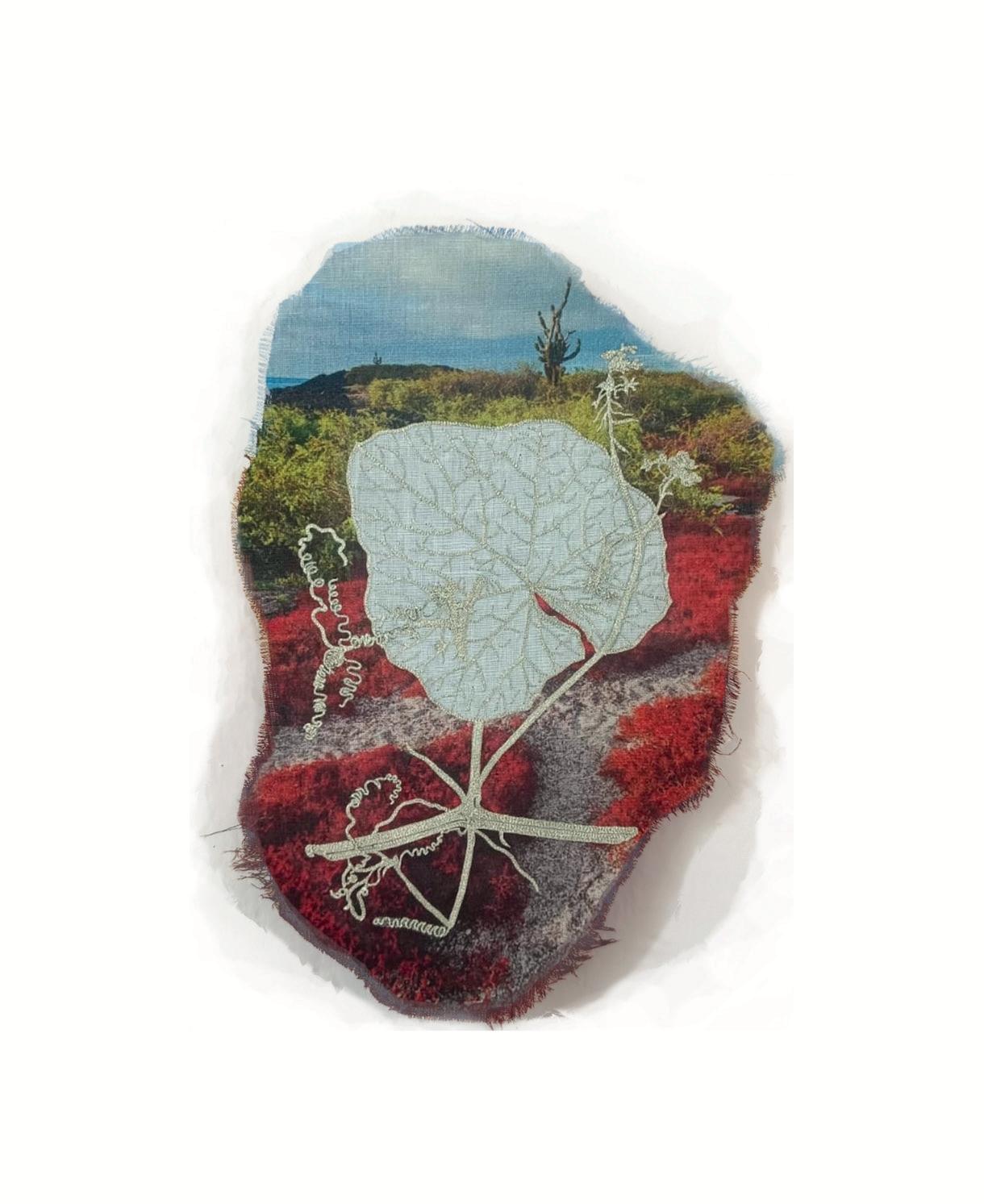 Embroidery on printed linen