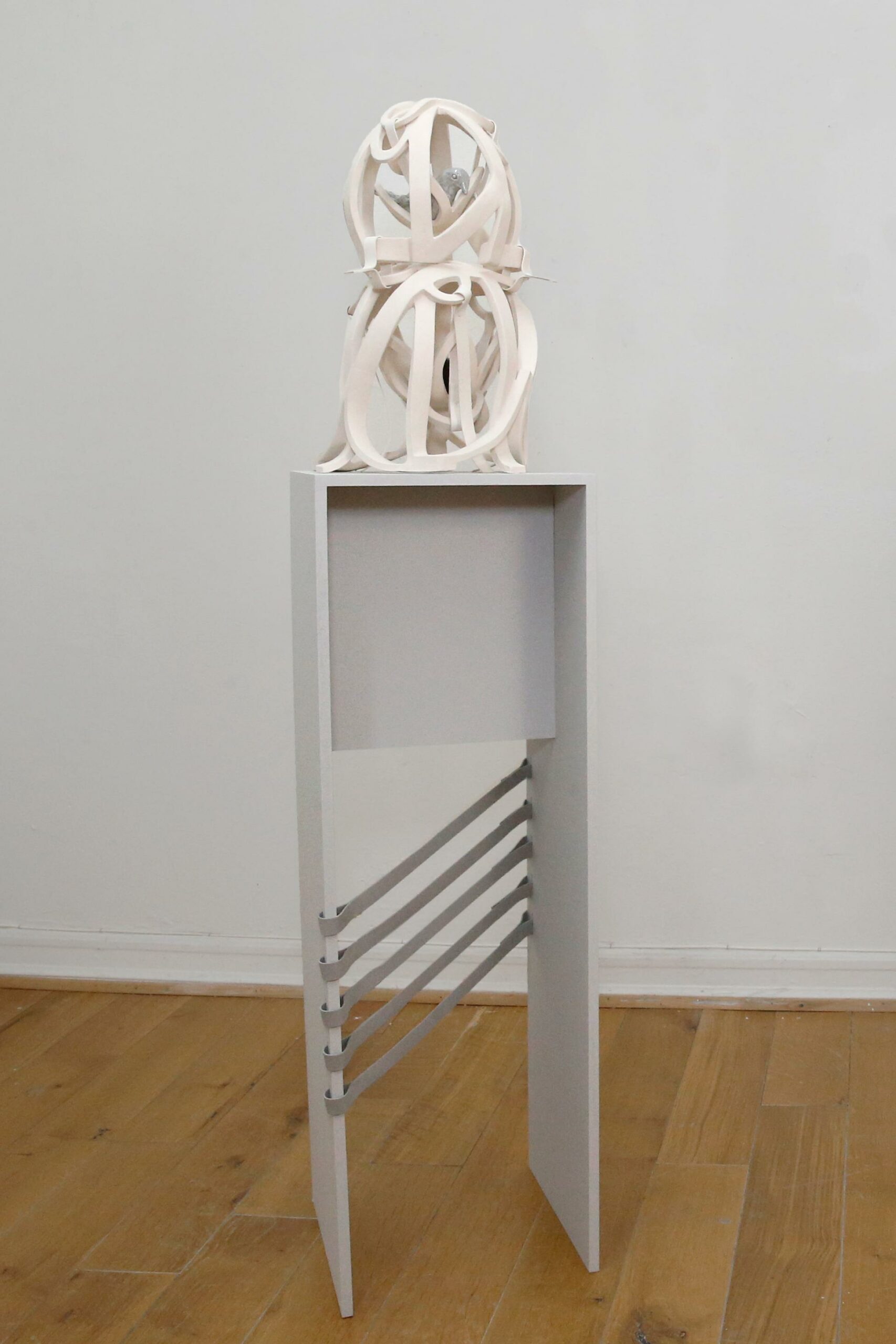 Ceramics, silicone, fasteners, MDF pedestal with wood and ceramic elements